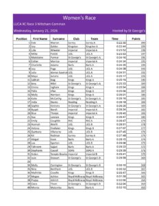 Race 3 Mitcham womens results January 21, 2026 James Findon Want to join the LUCA News team? Click here to find out more.